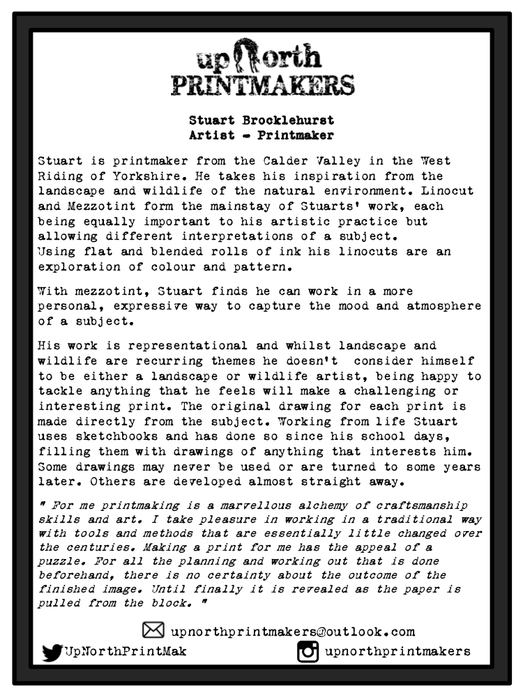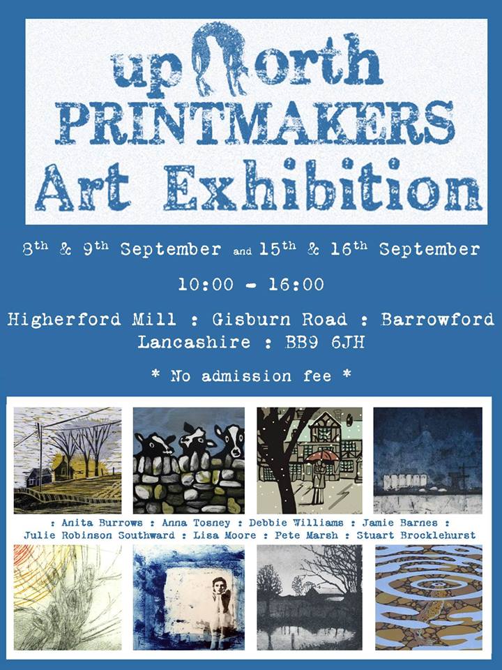 An exhibition of original prints by “Up North Printmakers” a creative collective of printmakers living and working in the north of England. The exhibition at Higherford Mills studio complex in the Lancashire village of Barrowford will include etching, drypoint, lino-cut, wood-cut, mono-print and more! Calling all art lovers to this exhibition where ALL the prints have been produced by hand, that is, the “plate” is created by the artist, hand inked by the artist and printed by the artist…these are individual original works.