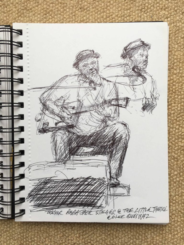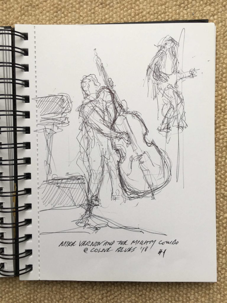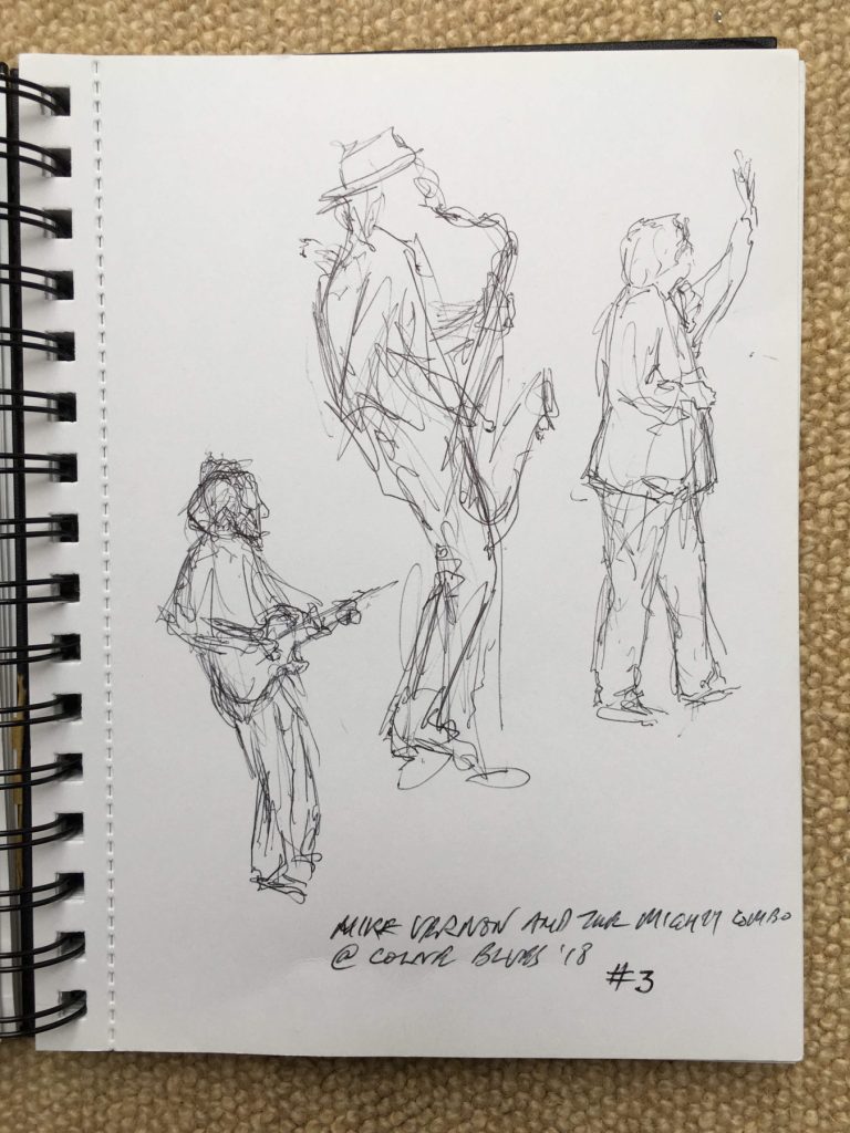 Below are my rapid fire drawings from Day Three of Colne Blues.