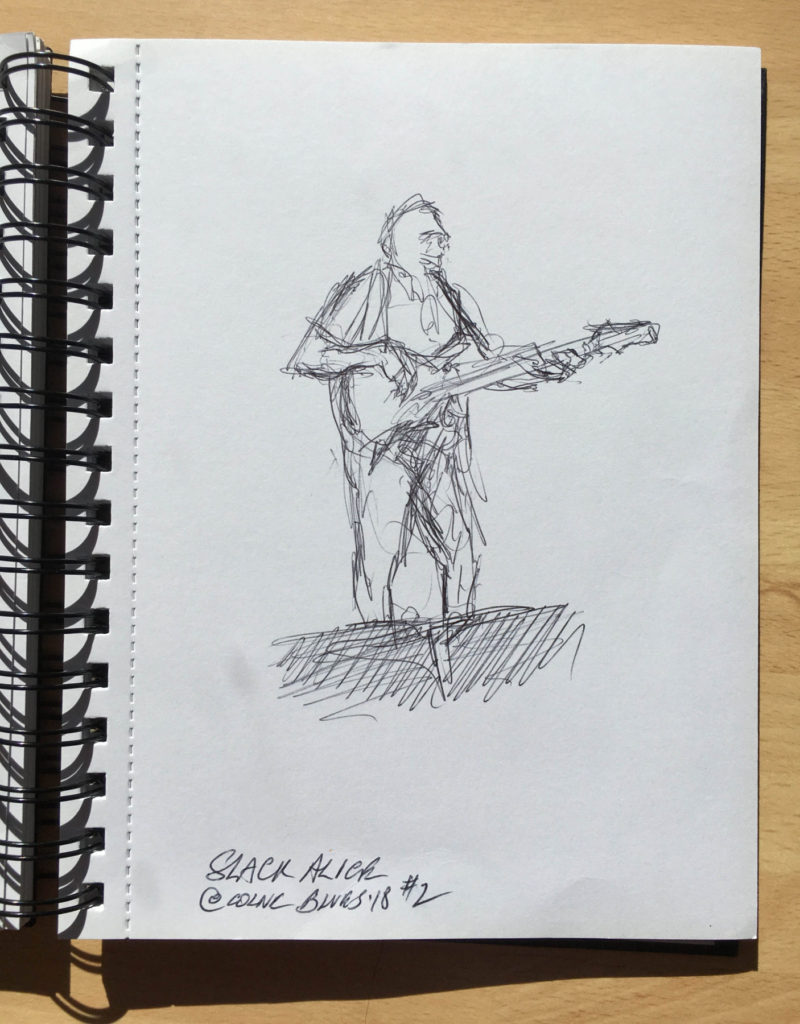 I’ll be setting off later to sketch more acts as the festival unfolds. Last year as “Artist-in-Residence” at Colne Blues I produced a large number of sketches, a number of paintings and a small number of trace mono-prints from the festival. Check out a selection of them at https://www.bluesfestival.co.uk/bluesfestgallery/artistinresidence/