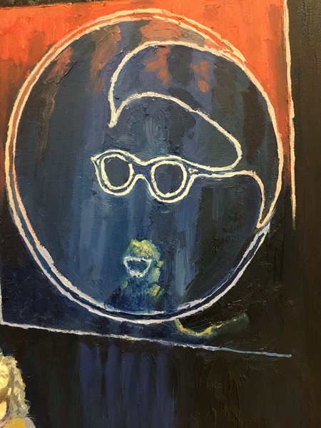 Here’s a slight reflection of Samantha Fish in Band On The Wall’s “Dizzy Gillespie” inspired back-drop. I utilized reflections of musicians in a couple of paintings before, namely with “Broken Witt Rebels Four Stars” and “Molly Marriott”.